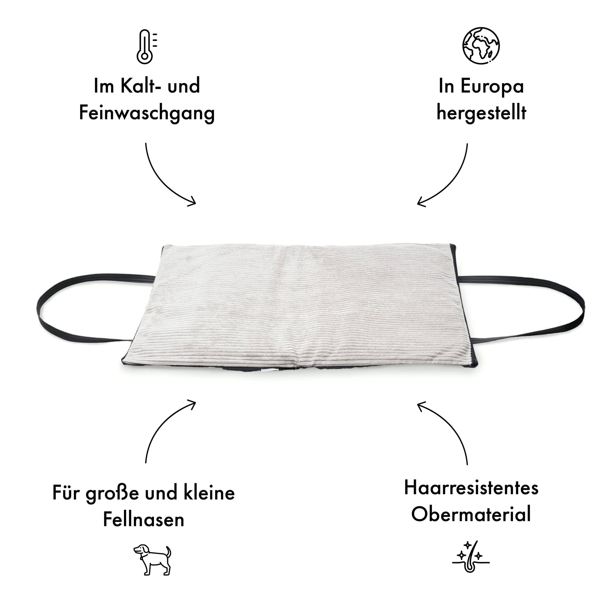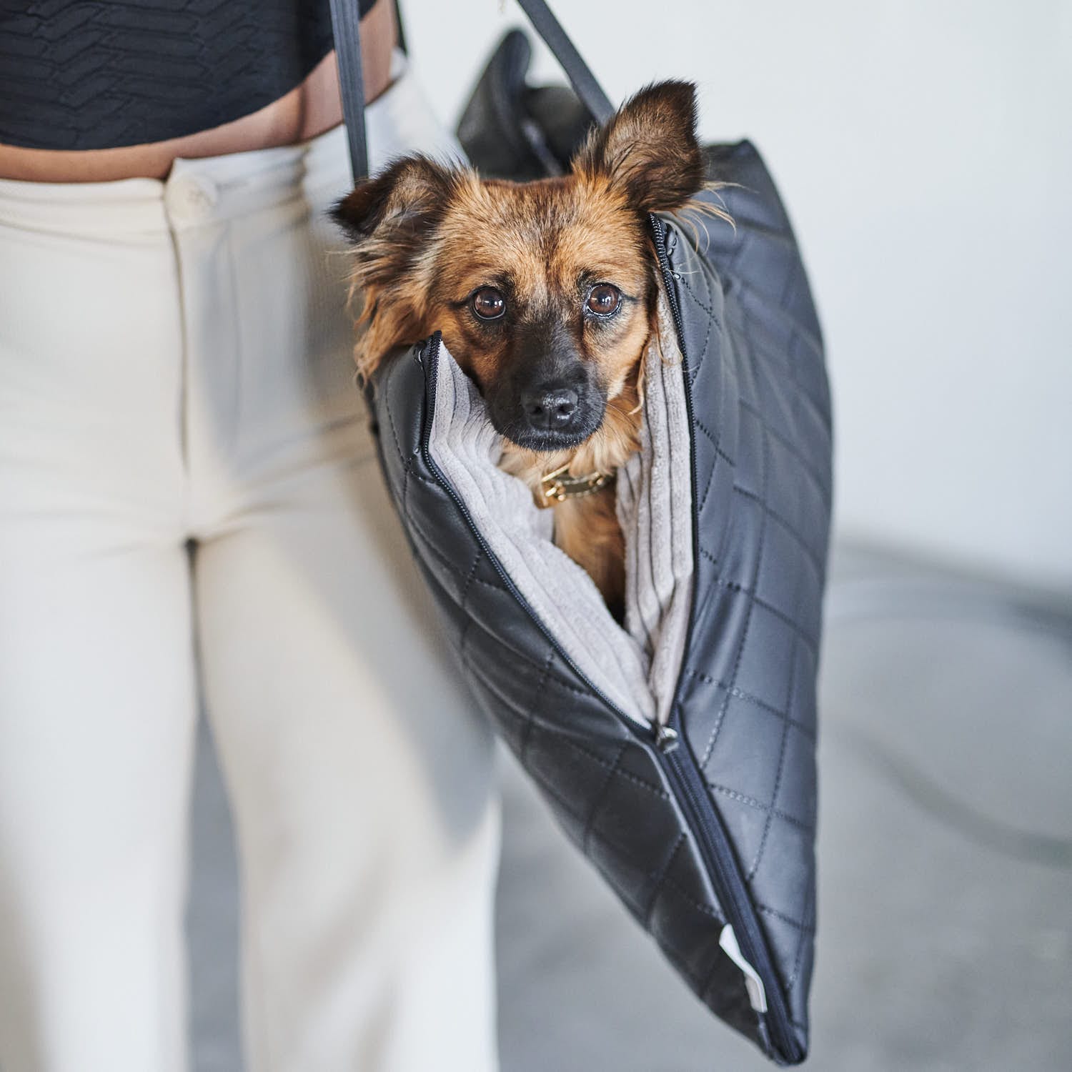 Stijlvolle draagtas en mobiele slaapplaats in één. Gemaakt van waterdicht imitatieleer, kan met een rits worden veranderd in een slaapmat, met wasbare hoes. Ideaal voor op reis met extra opbergruimte voor accessoires.